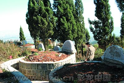 昨天(12月19日)下午3點30分,記者來到馬街后面的小青龍山上,雖然心里有所準備,但到了墓地集中的地方,眼前的情景還是大大出乎我們的意料。站在山頂往遠處看,昆明城區(qū)盡收眼底,美麗的滇池和睡美人也一覽無余,晴空下景色非常好。可往近處一看,眼前是一個個龐大的墓地。
