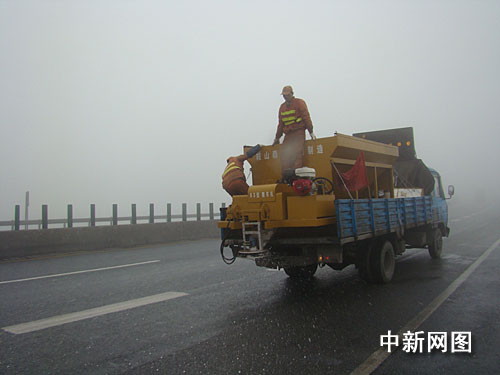 中新網(wǎng)韶關(guān)12月29日電(馮昶 李凌 李軍 廖躍華)隨著北方強冷空氣的不斷南下,地處高寒地帶的廣東京珠北高速公路部分路段已連續(xù)出現(xiàn)雨霧、低溫、冰凍等惡劣天氣。為確保惡劣天氣下各項應(yīng)急處置措施的科學(xué)有效,減少惡劣天氣對交通管理工作的不利影響,12月29日上午,廣東京珠北路政大隊和韶關(guān)交警高速公路大隊等多部門,聯(lián)合在廣東京珠北高寒路段進行了惡劣天氣應(yīng)急預(yù)案的演練。