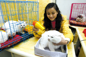 渝中區(qū)一名在證券公司上班的女白領(lǐng),辭掉3000元月薪后回家租房伺候收養(yǎng)來的19只流浪貓狗,平時靠在網(wǎng)上賣貓糧狗糧和給別人洗貓狗的收入來維持開支。昨天,當(dāng)石橋鋪一家證券公司以4000元的月薪請她“出山”時遭其拒絕。