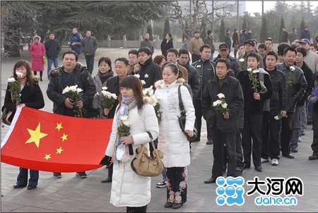 昨日,洛陽約百名網(wǎng)友自發(fā)到洛陽烈士陵園憑吊先烈。