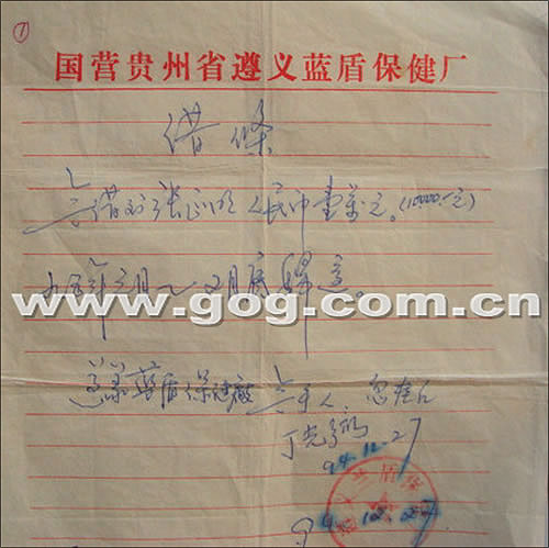 張某的父親告訴記者,兒子入獄兩個月后,想進監(jiān)獄醫(yī)院,以學(xué)得一技之長。鑒此,他找到時任院長丁光弼要求關(guān)照,丁答應(yīng)讓兒子進醫(yī)院,但同時向他提出了借款1萬元的要求,理由是:監(jiān)獄下屬“三產(chǎn)”企業(yè)遵義藍盾保健廠缺乏資金。張某父親說,為了兒子,他向銀行貸了1萬元,于1994年12月27日交給丁光弼后,丁和監(jiān)獄醫(yī)院財務(wù)人員忽桂紅共同在借條上簽了字,并蓋上了“遵義藍盾保健廠”公章。