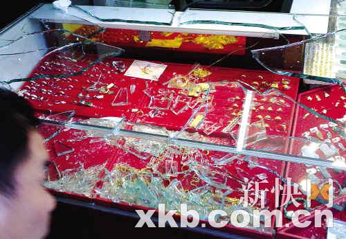 附近一商店店主用手機拍下的被劫金鋪的照片顯示,一個柜臺玻璃被砸碎。記者到該金鋪看到,現(xiàn)場已經(jīng)清理,各種金銀首飾擺放整齊,柜臺玻璃也已更換,店里看不出曾被搶劫的痕跡。見許多記者前來采訪,老板婉言拒絕并將店門關閉。