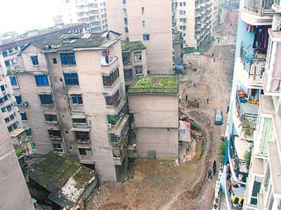 而忠州鎮(zhèn)州屏路二巷6號(hào)房主楊某與妻子唐某,卻并不認(rèn)同這種補(bǔ)償方式,開出了百萬巨額賠償。因?yàn)榻袃r(jià)沒有得到滿足,兩口子拒絕搬遷。2007年,所有拆遷工作結(jié)束,周圍的鄰居都搬走了,道路也挖到了他們家門口,但兩口子仍然不肯離開。