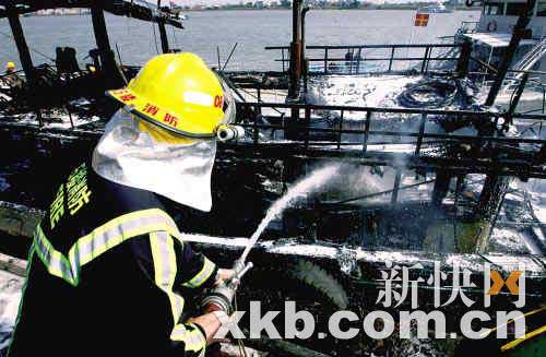 一名消防員指著船尾兩個(gè)被埋在木炭堆中的煤氣瓶說(shuō):“據(jù)船員說(shuō),船上本來(lái)有3個(gè)煤氣瓶,其中兩個(gè)剛加滿氣,另一個(gè)是空的,起火后有一個(gè)爆炸了。一名船員當(dāng)時(shí)在船頭位置,發(fā)現(xiàn)起火后就把纜繩解開了。后來(lái)他發(fā)現(xiàn)自己的手機(jī)放在駕駛艙,就闖進(jìn)去想拿出來(lái)報(bào)警,沒(méi)想到手機(jī)被燒壞了。”