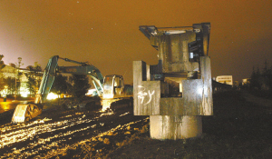 附近青城豪生國際酒店一位自稱酒店的工作人員說,軌道是17日晚11時(shí)被敲斷,只剩下3個(gè)水泥柱。但具體是誰敲斷的,他并不知道。