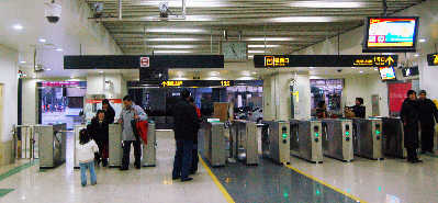 昨天下午,早報記者走訪3號線友誼路站,發(fā)現(xiàn)這段視頻的大部分畫面,應該是該站出口閘機處右側(cè)的攝像頭所拍攝。那里正對著閘機,視頻中出現(xiàn)的售票廳和淡黃色大門也在它的正前方。而視頻中切換過的一段畫面,應該是出站口正中的攝像頭拍攝的,從其正對的角度看去,站外馬路上的鐵欄桿也與視頻中的完全相同。