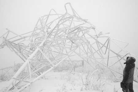 因大別山地區(qū)雪災(zāi)嚴(yán)重,三峽電力外送華東的大動脈——500千伏宜(湖北宜昌)華(上海華新)直流輸電線路受此影響,其中安徽金寨張沖段1146號~1153號線塔覆冰嚴(yán)重,導(dǎo)致4座500千伏線塔18日倒塌,這條電力外送通道送電因此中斷。我省送變電公司385名搶修人員已趕到現(xiàn)場進(jìn)行搶修。