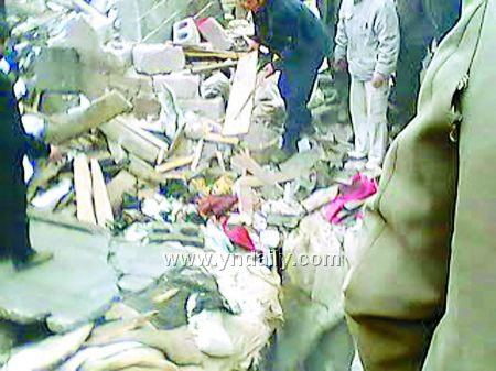 “太嚇人了!”據(jù)與爆炸樓房只有一墻之隔的汪女士回憶,上午10時(shí)30分左右,“嘭”的一聲爆炸聲響后,她家的電視突然失去信號(hào),還晃動(dòng)著要從柜臺(tái)上掉下來(lái),她趕緊伸手把電視扶住,隨后,屋里一片漆黑,滿是嗆人的煙塵,她出門一看,看見(jiàn)丈夫申開(kāi)能在屋外像木樁子一樣地呆呆站著,木板、竹竿、瓦礫、水泥渣等雜物不停地在他的周圍掉落下來(lái)。見(jiàn)此,她連忙把丈夫拉進(jìn)屋里,才脫離了危險(xiǎn)。隨后,聞?dòng)嵹s來(lái)的左鄰右舍們還發(fā)現(xiàn),在離爆炸地點(diǎn)200米左右的地里和小路上,還能看見(jiàn)被炸飛的帶血肉塊,村里一些老人看后也禁不住傷心落淚起來(lái):“太慘了!太慘了……”