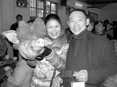 “好熱鬧,幾百個人一起殺豬團年,抽的獎品全是豬肉!”昨日,盡管氣溫降到了2℃左右,南充西山 “西湖樂”農家樂卻熱鬧非凡,一群素昧平生的網友從四面八方聚集在一起,舉行殺年豬大團年活動,大家大塊吃肉,大碗喝酒,還進行各種娛樂活動,抽到的最高獎品則是戴著大紅綢緞的豬頭。