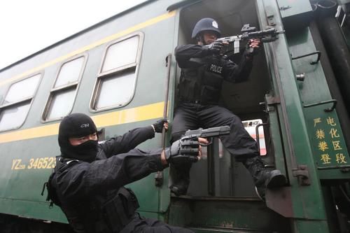 3名悍匪竄上從重慶開往深圳的一列火車,劫持了2名乘客。特警隊員爬上火車頂、翻窗進(jìn)入車內(nèi),成功將悍匪制服。昨天,在重慶北火車站,一場精彩的反恐演練讓人看得目瞪口呆。