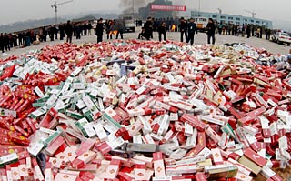 2006年9月11日,河南省滎陽(yáng)市煙草和公安部門(mén)的人員,查獲了一輛外包裝上標(biāo)注為干菜和電器配件的貨車(chē),里面裝滿了包括中華、芙蓉王等品牌的453萬(wàn)支假煙。一個(gè)驚天大案由此拉開(kāi)帷幕。