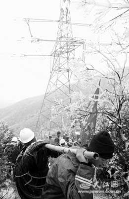 29日,一場大雪飄落南昌。12時(shí)30分,記者登上梅嶺主峰,來到海拔近千米的南夢線72號(hào)鐵塔,這是江西電網(wǎng)大動(dòng)脈的一環(huán),它的修復(fù)以及再次運(yùn)行將把來自三峽的“血液”直輸我省,填補(bǔ)1/3的用電缺口。