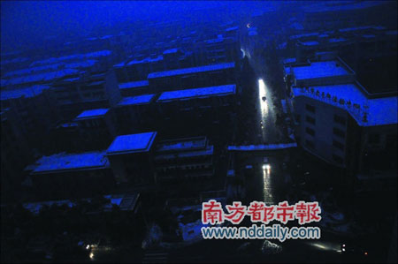 昨晚,記者在郴州市政府應(yīng)急指揮中心寫稿,電力也兩度中斷。截至今日零時記者發(fā)稿時止,市政府大樓的供電仍未恢復(fù)。