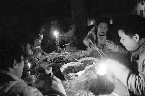 2月1日凌晨,記者從郴州火車站出來,乘坐出租車在城區(qū)經(jīng)過時,發(fā)現(xiàn)除個別地方有燈光外,到處是黑壓壓的一片。出租車司機說,郴州市區(qū)停水、停電快8天了,除了少數(shù)自己發(fā)電的地方,到處都沒電。