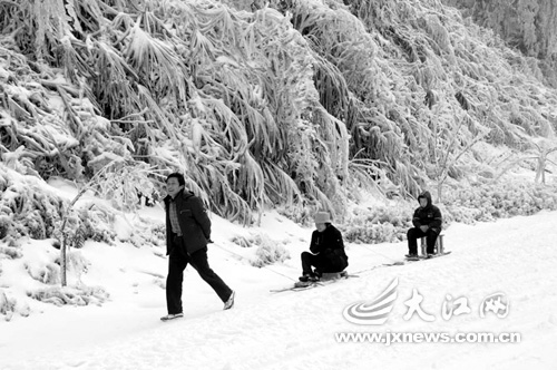 江西井岡山近萬人被困 上山下山靠滑雪橇(組圖)