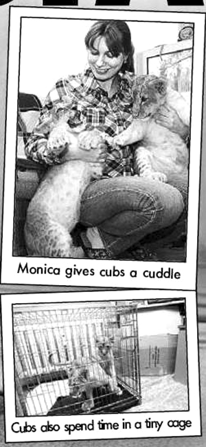 但2007年圣誕節(jié)早上,莫妮卡打開房門時目瞪口呆地發(fā)現(xiàn),這次陌生人遺棄在她家門口的動物,竟然是2頭剛出生的獅子!2只小獅崽被裝在一個小紙盒子中,渾身凍得瑟瑟發(fā)抖。它們可憐巴巴地望著莫妮卡,就如同2只溫順的小貓。莫妮卡頓生憐愛之心,立即將它們抱進家中取暖。
