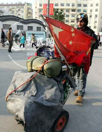 今年24歲的新疆喀什人庫爾班江·吐爾遜于2007年7月5日從烏魯木齊出發(fā),正式開始徒步宣傳禁毒和預(yù)防艾滋病之旅。一路上,他穿越戈壁、沙漠、火焰山等危險(xiǎn)地帶,途徑甘肅、陜西、河南等省市,于2008年除夕抵達(dá)上海。