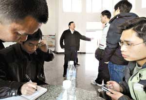 、谧蛉丈衔,在九江市德安縣公安局,該局雷政委(中)正在與當(dāng)?shù)匦叹、志愿者和本?bào)記者一起布置行動(dòng)方案。