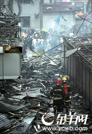 “轟”的一聲巨響,廣州黃埔區(qū)107國道南崗路段一汽修廠內(nèi)頓時(shí)升起蘑菇云,爆炸的威力令一公里之內(nèi)的房屋門窗和天花紛紛破碎掉落,爆炸點(diǎn)數(shù)十米范圍內(nèi)的建筑也被摧毀,從現(xiàn)場飛出的數(shù)塊汽車殘骸散落在距離現(xiàn)場幾百米遠(yuǎn)的107國道和居民小區(qū)內(nèi)。周圍居民紛紛四散逃命。