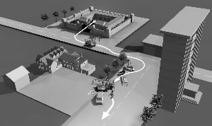 從監(jiān)獄門口到謝萬禮棄車逃跑地點大約有1500米距離。在軍校廣場東側的便道上,還有兩棵樹被連根撞斷的痕跡,一家網(wǎng)吧的收銀員證實,吊車開到軍校廣場東北角后,繼續(xù)向南行駛,但連續(xù)撞了4輛轎車后沖上便道,撞斷了兩棵樹,隨后丟下車逃走了。