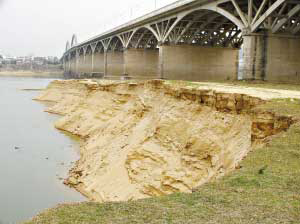 從今年春節(jié)前開始,博羅東江大橋附近的非法采砂現(xiàn)象突然猖獗起來,不到一個(gè)月時(shí)間大橋南岸就被挖出一個(gè)長(zhǎng)250米、寬250米、深10米的大坑,有一個(gè)半籃球場(chǎng)那么大,F(xiàn)在大坑邊線離大橋8號(hào)橋墩最近處只有10米,如果繼續(xù)開挖或遇洪水非常容易造成大橋坍塌,可謂“危在旦夕”。