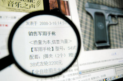 16日下午,海南一男子在重慶某網(wǎng)站發(fā)帖子,稱可以銷售各種型號的軍用手槍和全自動狙擊步槍。重慶市公安局網(wǎng)監(jiān)管理處工作人員稱,已經(jīng)對此事備案,正在查處,提醒市民不要上當。