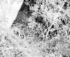 記者昨日幾經(jīng)輾轉(zhuǎn),目睹了吳華當(dāng)時(shí)所拍攝的錄像帶,出現(xiàn)“華南虎”的鏡頭共19秒,錄像中的大型貓科動(dòng)物與年畫(huà)中的華南虎十分相似。