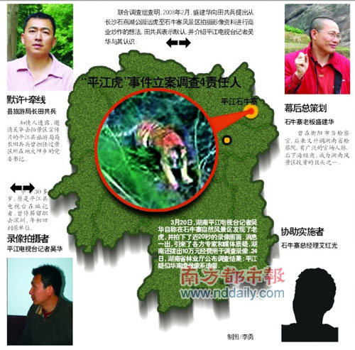 而根據(jù)官方公布的調(diào)查結(jié)果,2月,盛建華向縣旅游局長(zhǎng)田共兵提出從長(zhǎng)沙石燕湖公園運(yùn)虎至石牛寨風(fēng)景區(qū)拍攝影像資料進(jìn)行商業(yè)炒作的想法,田共兵表示默認(rèn),并介紹平江電視臺(tái)記者吳華與其認(rèn)識(shí)。