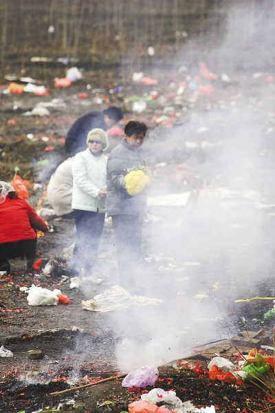 據(jù)石家莊市民政局統(tǒng)計,該市每年約50萬人在清明前后外出祭掃,給道路、公墓等場所的管理帶來很大壓力。同時,傳統(tǒng)的燒紙錢祭奠,既造成環(huán)境污染,又增加火災(zāi)隱患。去年4月2日至5日,全省有13起因上墳燒紙引發(fā)的火災(zāi)。