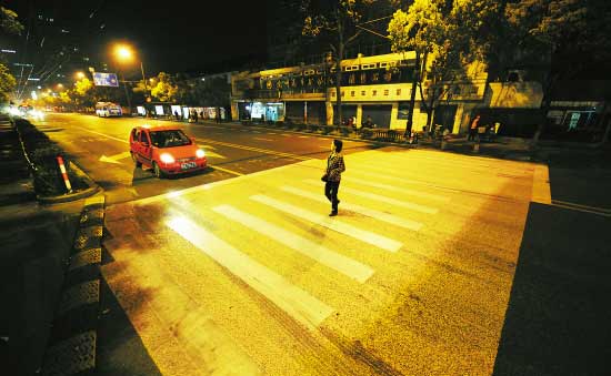 “現(xiàn)在行人過(guò)斑馬線(xiàn),真正感到安全了,杭州交警想得真周到。”昨天,騎車(chē)經(jīng)過(guò)湖墅南路的蘇先生驚喜地發(fā)現(xiàn),白色的斑馬線(xiàn)變了顏色。