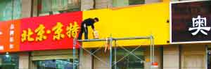 牌匾的位置也要統(tǒng)一:“應(yīng)設(shè)置在一層門(mén)楣以上,二層窗戶(hù)線以下”,“上下一條線,伸出一個(gè)面,距地一樣高”。