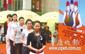 本報訊 昨日上午,沙坪壩區(qū)三峽廣場數碼城外,南航“2008中國新空姐招募大匯”開幕。這是繼2006年在全國以海選模式招聘空姐以來,南航第二次采用同樣方式在重慶招募空姐。據現場組委會統(tǒng)計,昨天,通過網上和現場報名的女孩有2000來人,現場有1000多人進行了常規(guī)檢驗,最終留下300人。