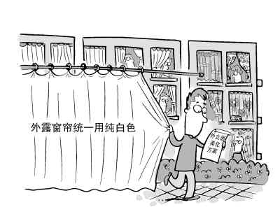 “這份方案并沒有考慮到很多住戶的實際情況。如果居民使用的不是純白色,是不是意味著都要更換掉,那么換窗簾這筆錢由誰出?業(yè)主還是管委會?空調(diào)安裝位置不符合要求的,要將外機移到指定位置,如果住宅建筑時沒有設(shè)計安裝位置或者不同住宅安裝的位置不一樣,又如何協(xié)調(diào)?”一位當(dāng)?shù)鼐用窀嬖V記者,這筆錢不管誰出,都有點“勞民傷財”的感覺。