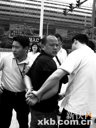昨日中午12時(shí)35分,記者領(lǐng)著4名便衣警察趕回交易地點(diǎn),胖男正在此地不安地走來走去,兩眼不停地在穿梭的人流中搜尋著,記者走到他身前時(shí),他突然發(fā)覺情勢不對,轉(zhuǎn)身想跑,但又顯得有些遲疑。