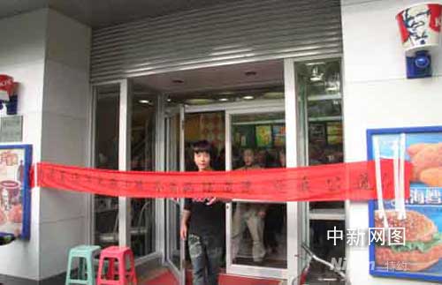在派出所3次出警無效下,憤怒的陳女士做出了在肯德基店門口 拉橫幅攔顧客的舉動(dòng)。而肯德基方面更是以鎖住店門把陳女士連同當(dāng)時(shí)還在就餐的10幾名顧客一起困在了店堂里。時(shí)間長達(dá)一個(gè)多小時(shí)。最后還是在圍觀群眾的憤怒聲中才打開店門。