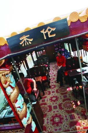 “杰倫號”上最特別的就是一幅與杰倫同比例的大幅紙質(zhì)模特,笑容滿面地坐在原來杰倫坐的位置上,前面的茶幾上還放著杰倫品嘗過的狀元豆、雨花茶。據(jù)稱,這個(gè)“模特”可以供游人照相。