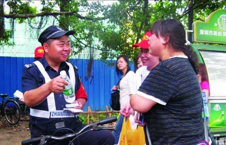 “柳的妞”是一家公司的管理人員。五一節(jié)前,她和幾個(gè)同事通過在網(wǎng)上發(fā)帖的形式召集網(wǎng)友參與名為“我為交警送瓶水”的大型公益活動(dòng);顒(dòng)最終得到了十幾名網(wǎng)友的支持,30多名同事及網(wǎng)友最終約定在紅樹林集合,實(shí)施這次公益行動(dòng)。