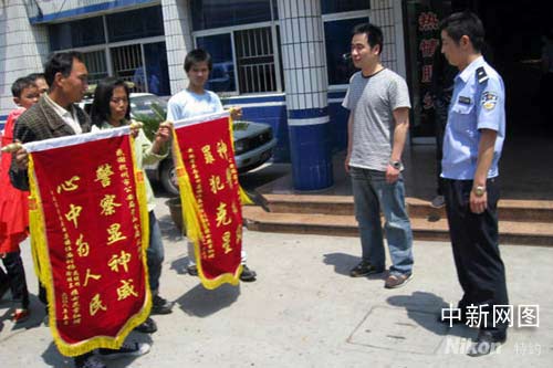 5月13日上午,花繼輝夫婦帶著女兒把錦旗送到了派出所。王偉強(qiáng) 攝