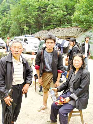 昨天上午開(kāi)始,也不斷有村民從大山深處爬出來(lái)。為了生的希望,這些村民拖家?guī)Э冢宦贩龀,每個(gè)人到達(dá)山下的時(shí)候都一身泥濘。