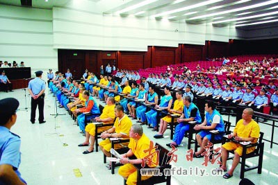 昨日上午,禪城區(qū)人民法院在佛山市中院,公開開庭審理一起黑社會(huì)性質(zhì)組織犯罪案件,被告人張超剛、咸冠宇、王林等36人分別涉嫌組織、領(lǐng)導(dǎo)、參加黑社會(huì)性質(zhì)組織罪、開設(shè)賭場(chǎng)罪、搶劫罪、綁架罪、故意傷害罪、聚眾斗毆罪、非法持有槍支彈藥罪等10項(xiàng)罪名。