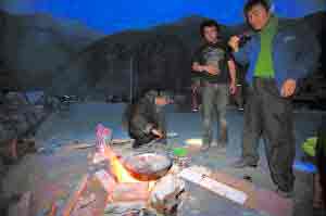 北京記者脫險后,才發(fā)現(xiàn),救助他們的是一位藏族村民和兩位羌族村民,還有一位60多歲的老人帶著個襁褓中的嬰兒。他們非常友善,為了北京記者放棄了趕路。他們將自己身上僅有的一點水和食物分給記者,在安全的地方點起篝火,等待營救。一晝夜過去了,直到13日晚,仍沒有救援的隊伍抵達,幾位當?shù)厝艘缓嫌嫞瑳Q定連夜翻山出去求援。王成則主動要求留下陪伴團里的兩位傷號。團里剩下的5人經(jīng)過一晝夜的跋涉于14日上午7時抵達都江堰求援。當晚7時,本報前去營救的記者張宏江在映秀的百花大橋附近發(fā)現(xiàn)了王成。