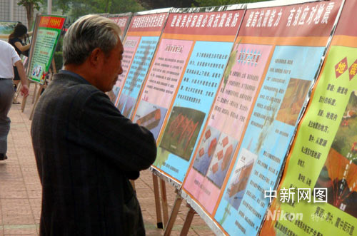 記者隨機(jī)采訪(fǎng)了一個(gè)四年級(jí)的高同學(xué),他正聚精會(huì)神地閱讀有關(guān)避震逃生的方法!耙郧拔腋静恢赖卣鸢l(fā)生時(shí)應(yīng)怎樣保護(hù)自己,現(xiàn)在學(xué)到很多知識(shí)!睂(duì)于汶川地震,他說(shuō),這幾天他都和父母一起收看新聞,了解救災(zāi)情況,而且很高興把自己的零花錢(qián)捐給了災(zāi)區(qū)。