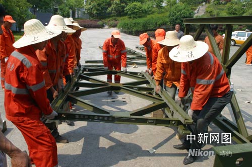 浙江赴川搶險架橋突擊隊員加緊架設(shè)鋼橋演練(圖)