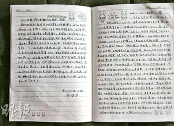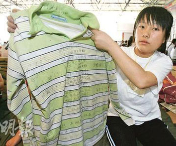 據(jù)香港《明報(bào)》報(bào)道,“沒有課本,沒有書桌,我們什么也沒有!闭鸷蟮谄咛欤∪A和逾千名幸存同學(xué)坐在紙皮上,用大腿墊起日記本,用中文記錄著她們的恐怖往事,用英文展望著北川的美好將來。