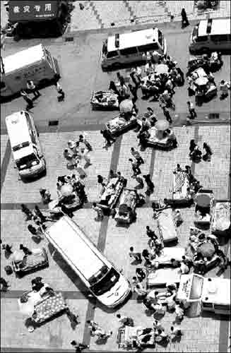為了使傷員得到更好的治療和照顧,部分傷員將從綿陽轉(zhuǎn)至重慶。從17日晚10時開始,500多輛急救車開始了轉(zhuǎn)移傷者的行動。