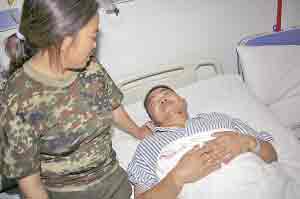 昨日,躺在大坪醫(yī)院病房里的劉崗均病情已經(jīng)穩(wěn)定,但他卻開始心慌、焦急:因為地震讓他與兒子失去了聯(lián)系,這比活生生鋸斷腿更讓他痛苦。