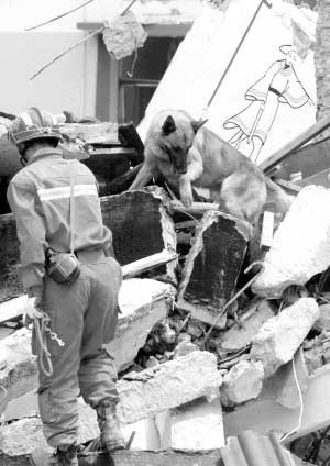 它的身影從抗震救災(zāi)一開始便出現(xiàn)在人們的視野中,它的工作地點(diǎn)在坍塌廢墟,用靈敏的鼻子捕捉最微弱的生命氣息——它們就是被網(wǎng)友尊稱為“不會說話的天使”的搜救犬!此次汶川大地震發(fā)生后,國家地震局應(yīng)急搜救中心共派出12只具有高級職稱的搜救犬,僅在映秀,它們就搜索出17名埋在廢墟里超過3天以上的被困者,映秀鎮(zhèn)最后兩名被困者虞錦華和馬元江能夠成功被救出,搜救犬都立下了汗馬功勞。