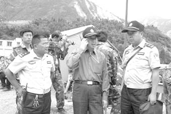 坐下來(lái)的時(shí)候,已經(jīng)有幾個(gè)漢子圍坐著在狼吞虎咽地吃飯。這幾個(gè)漢子,一個(gè)個(gè)皮膚黝黑,額頭大塊脫皮,眼泡腫脹。一個(gè)尤為烏黑消瘦的漢子用嘶啞的聲音招呼我們多吃點(diǎn)。聽(tīng)旁邊的人介紹,才知道這個(gè)漢子是四川省公安廳政治部主任、阿壩州抗震救災(zāi)指揮部副總指揮簡(jiǎn)勝彬。記者簡(jiǎn)直不敢相信自己的眼睛。因?yàn)楣ぷ麝P(guān)系,我們對(duì)他再熟悉不過(guò)了。但是,坐在對(duì)面幾分鐘了,竟然沒(méi)能認(rèn)出他來(lái)。連續(xù)在救災(zāi)現(xiàn)場(chǎng)奔忙了9天多,沉痛的心情、繁重的抗震救災(zāi)工作任務(wù)、惡劣的自然環(huán)境、簡(jiǎn)陋的生活條件已經(jīng)讓他完全變了樣。