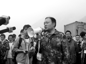 廖敏:情況很差,房子倒了很多。當時我們餓了一天多,村民們就把掛在屋里的玉米棒子給我們,我們就烤了吃。村里的糧食儲備也不多,我們和鄉(xiāng)政府的人估計了一下,就能支撐個3、5天。于是我們把村民組織起來,告訴大家情況,然后限制供應(yīng)糧食,每人每天只能領(lǐng)1斤大米。14日的時候,由于擔(dān)心汶川縣城,我?guī)Я?個人準備徒步去映秀,但走了8公里后,又遇到余震,山石不斷滾落,我們不得不返回原地。