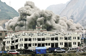 廖:地震發(fā)生時,我們一個副縣長正好在映秀檢查工作,他們當時站在公路中間,就感覺地晃,樓倒塌,漫天是灰塵。